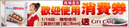 使用貨到付款及ibon來付消費卷兩種方式,還送CITY CAFE但是限量一萬杯,這樣的方式真的非常的便捷但所給的優惠相對較少,因為使用貨到付款及ibon這兩種方式會有較多的物流費用及一些代收費PChome要吸收掉,所以只能送你喝杯咖啡囉!!還限量一萬杯,晚了就沒有了。