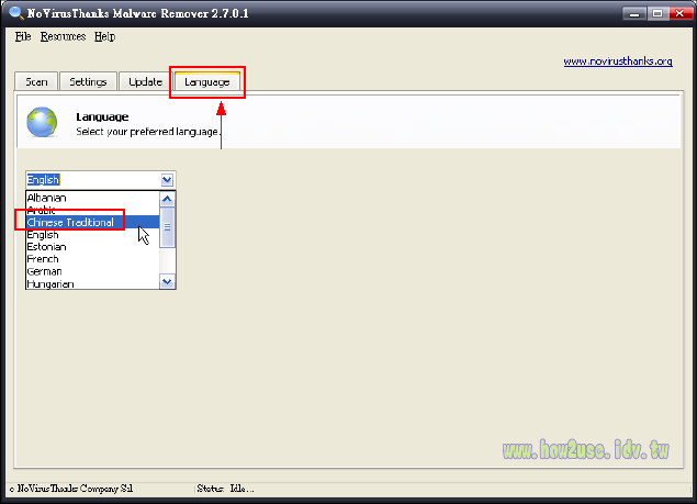 1.安裝軟體完後到【Language】頁選擇Chinese Traditional將軟體介面變更成中文介面。