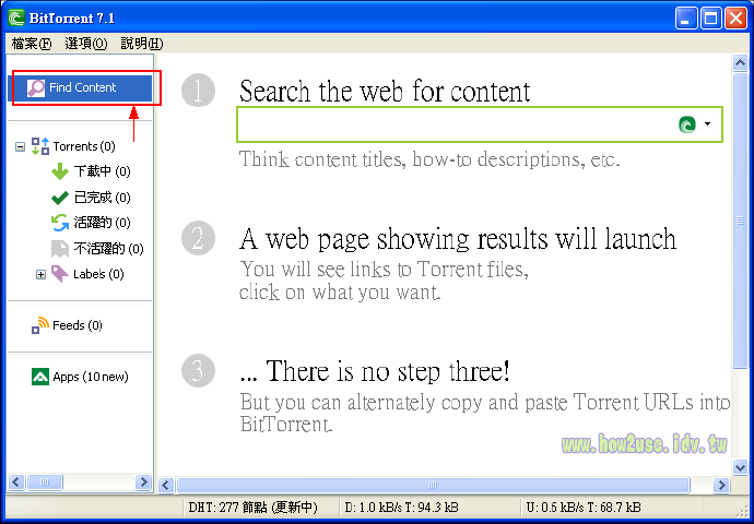 BitTorrent是一個下載BT的軟體,先前有寫過BitTorrent 6.1版的BT軟體教學,6.1版介面和µTorrent有些許的類似,但在新版的7.1版在介面上有些許的改變,還有BitTorrent Apps來強化BitTorrent功能,以及增加Torrent的搜尋功能介面。