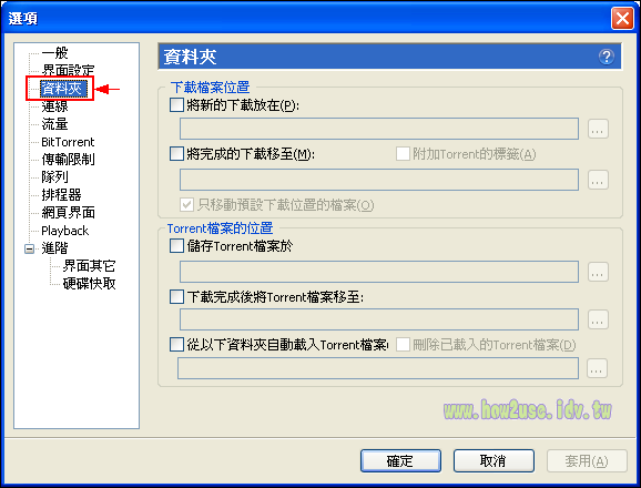 【資料夾】:設定BT下載檔案放置儲存的位置。