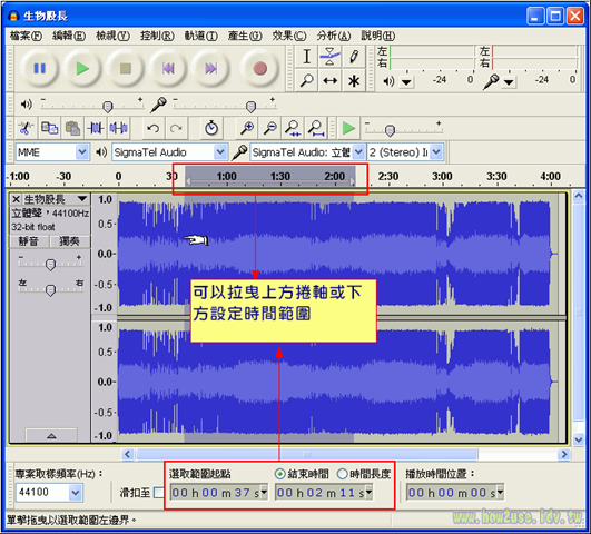 2.檔案加入後,對一個範圍的時間用拉曳或是下方填入時間範圍。
